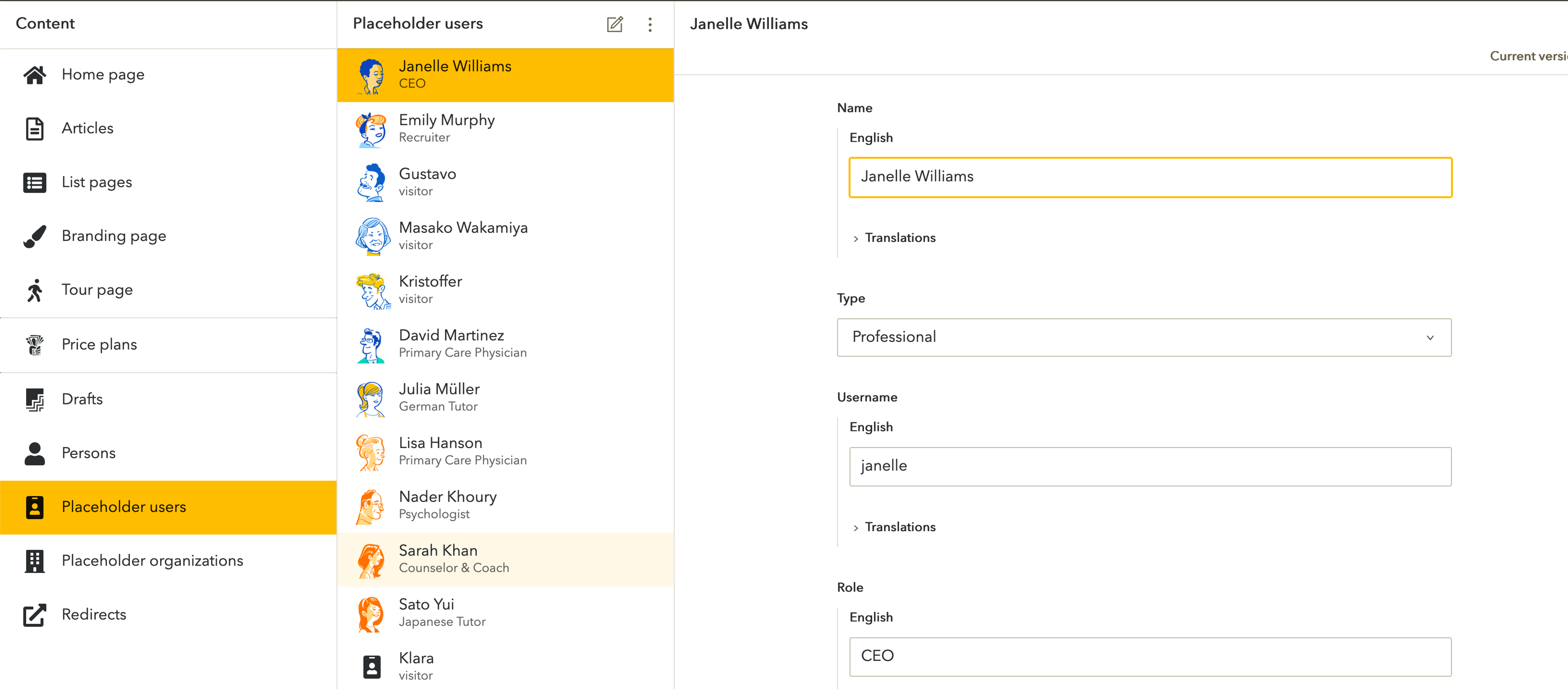 The team at Confrere is slowly migrating their website from Markdown to the Sanity Studio. Seeing these Studio screenshots is amazing! The coloring, the icons, the ”Placeholder users”; it‘s all so inviting.