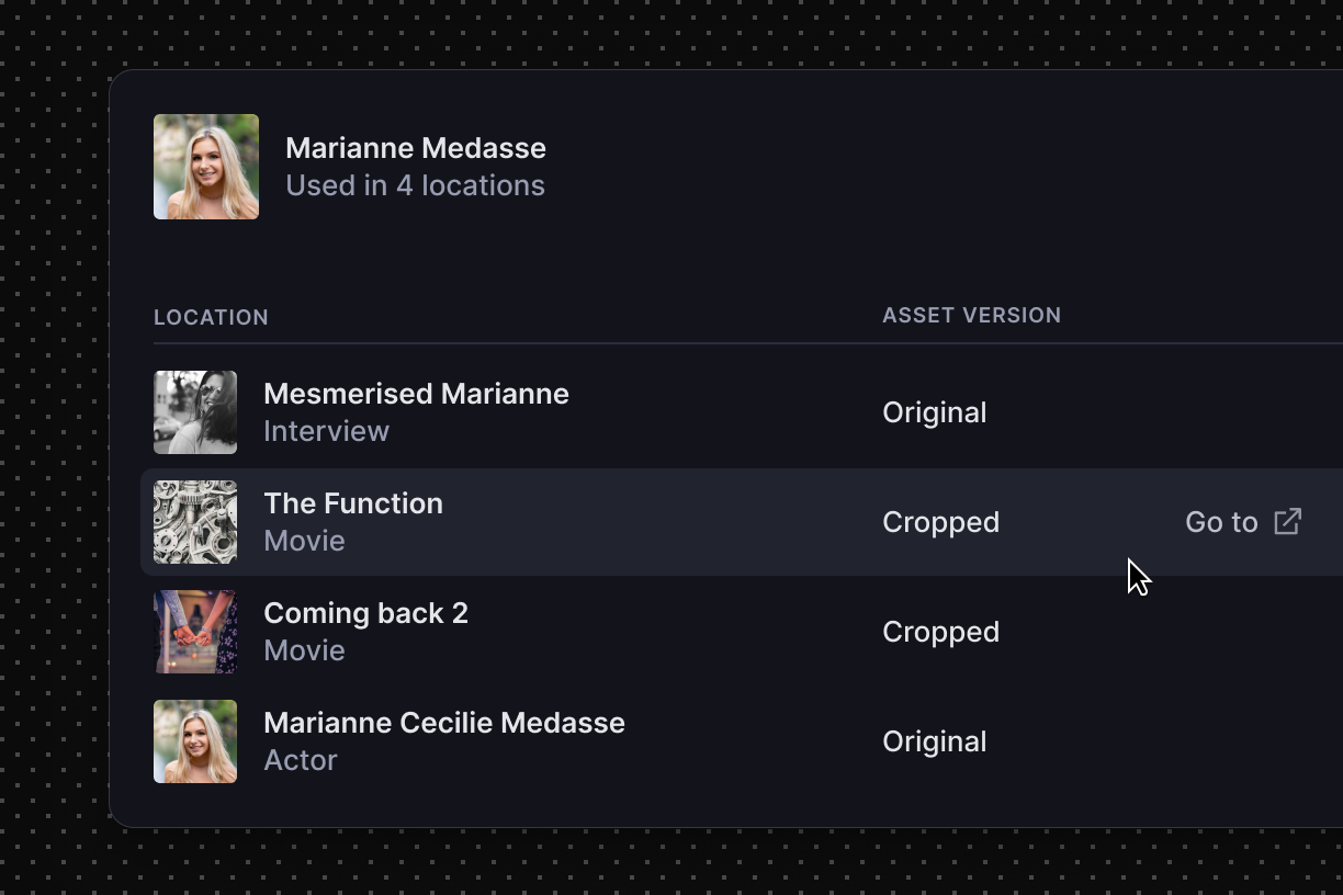 Identify which assets are actually used in your content. Quickly pinpoint the unused ones to clean up your storage, keeping your media focused and efficient.