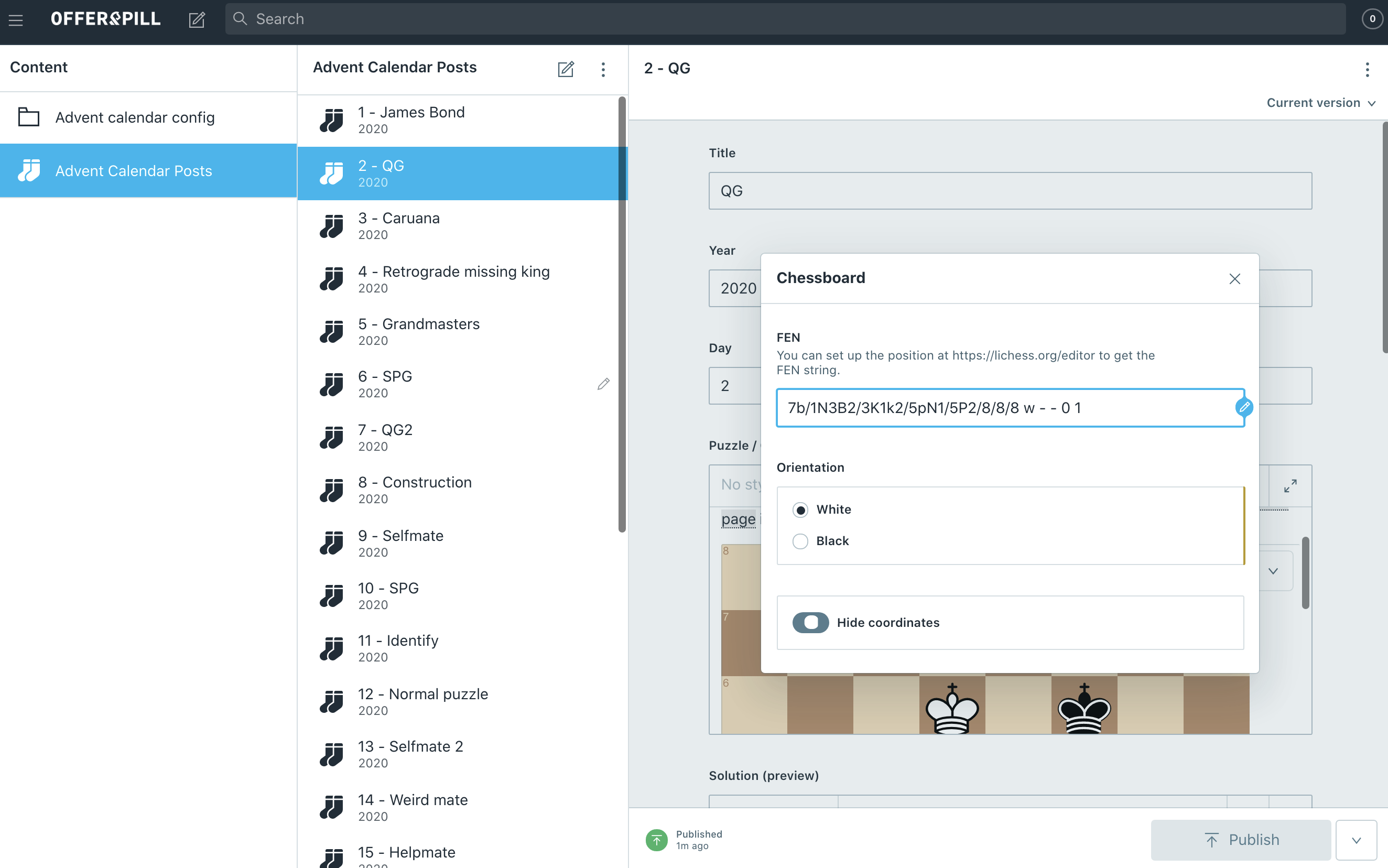 Asbjørn Steinskog put custom input components to work in creating the Advent of Chess. It features a custom input component for starting positions on a chessboard and a login and leaderboard for those participating.
