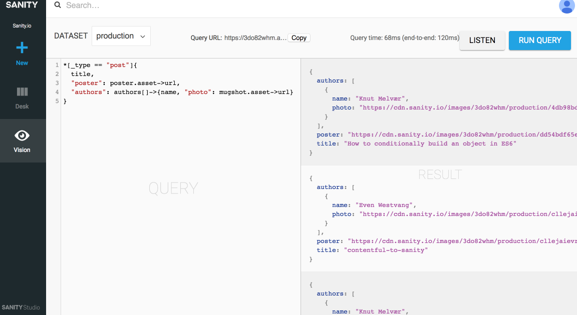 Learn how to get started with Sanity1. Create a query, copy the URL
