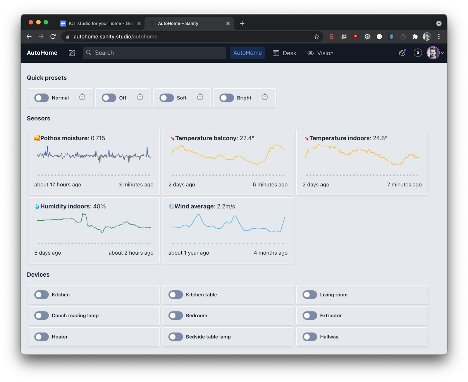 In addition to the Philips Hue lights, there are many things you can automate in your home right from your Sanity Studio.