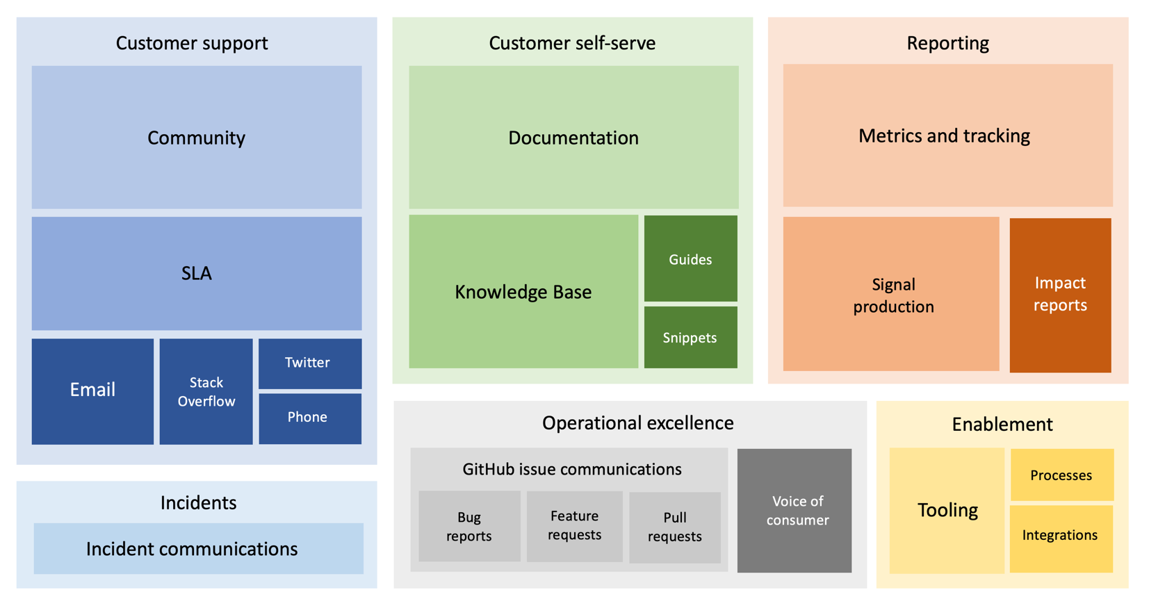 Sanity’s support organization covers six areas of responsibility, as shown below.