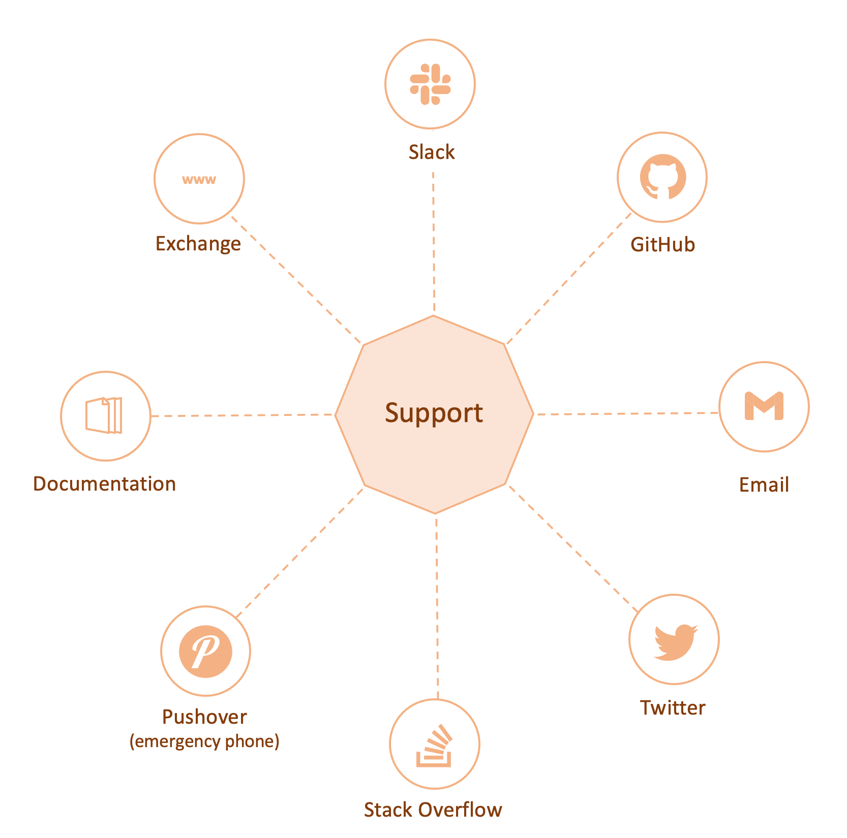 As a support team, we cover multiple surfaces, including external platforms like GitHub, Stack Overflow, or Twitter, web properties like the Exchange and documentation section on our site, and channels like Slack, email, and phone. Among all of these, Slack is by far our largest and most important channel. We use Slack for enterprise support in the form of dedicated channels that we share with client organizations. We also host our community of over 17,000 developers and content creators on Slack.