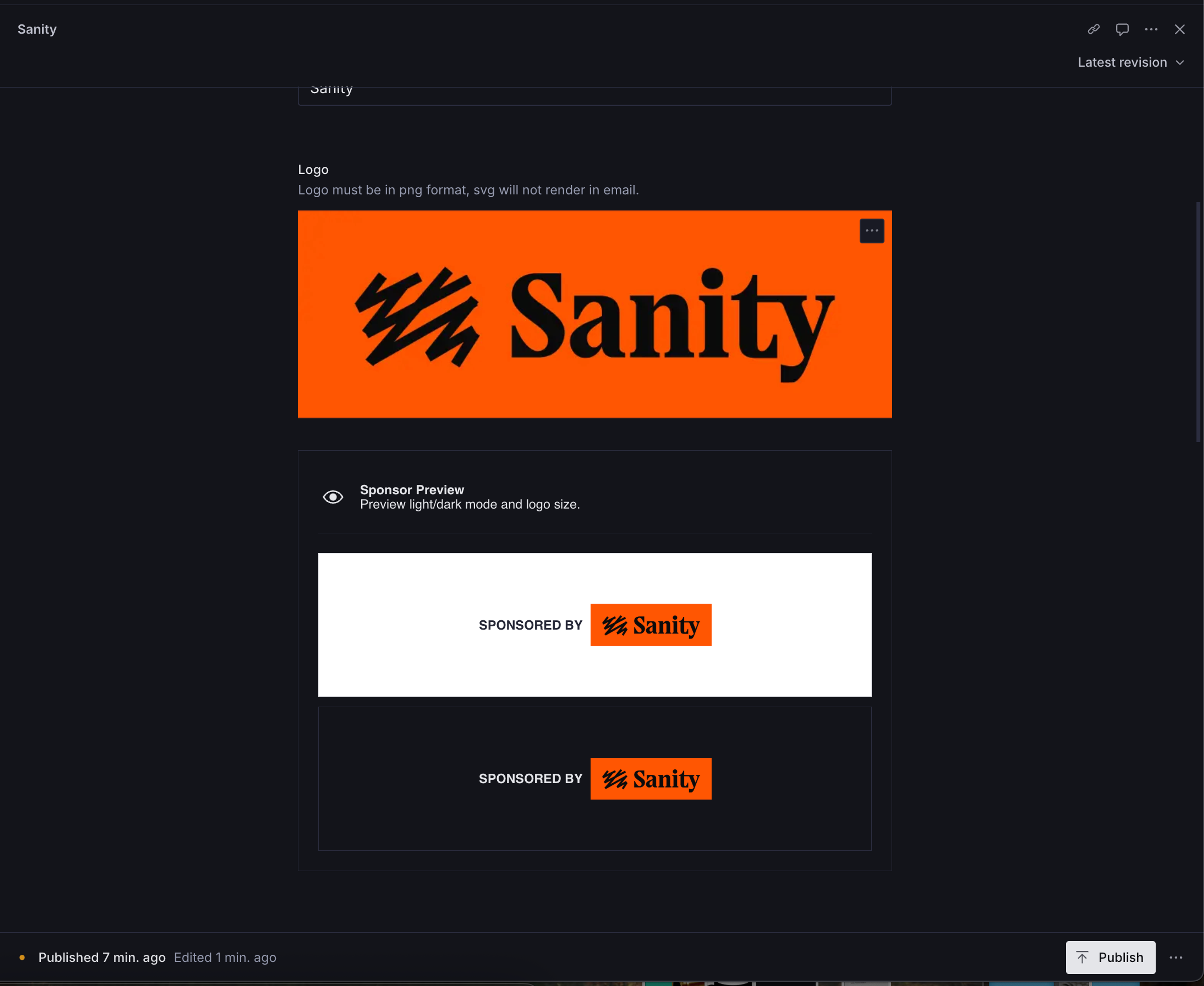 Custom logo preview component: Built by developers to let editors instantly preview brand assets in light and dark mode. No guesswork and no back and forth.