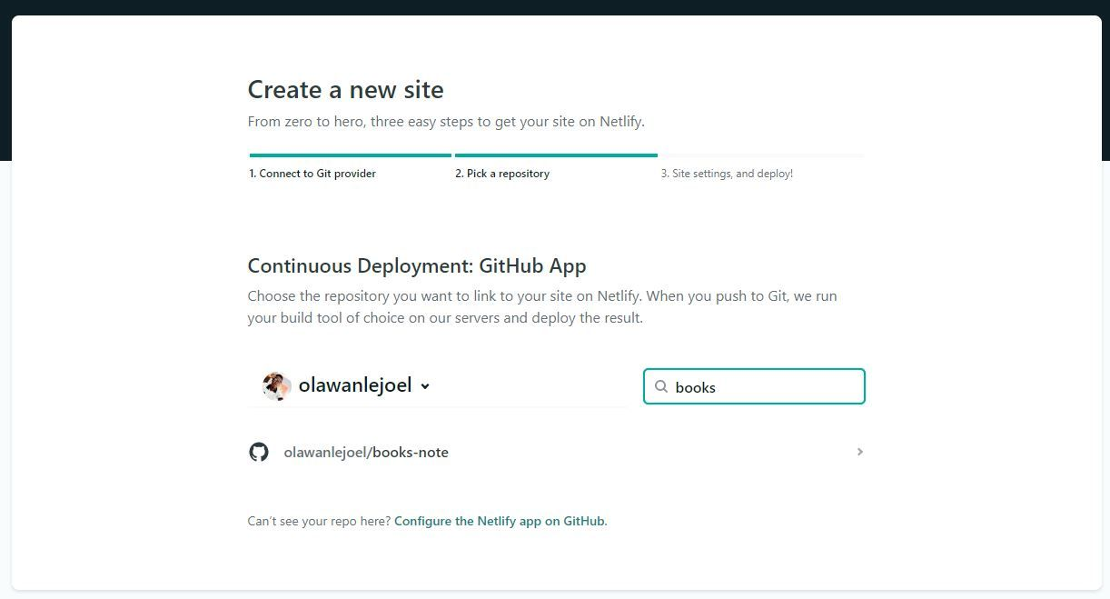 Click on "New site from Git." A new page will appear to choose the Git provider where your site's source code is hosted. In our case, we choose GitHub. Once it's authorized, you can now search for the GitHub repository.