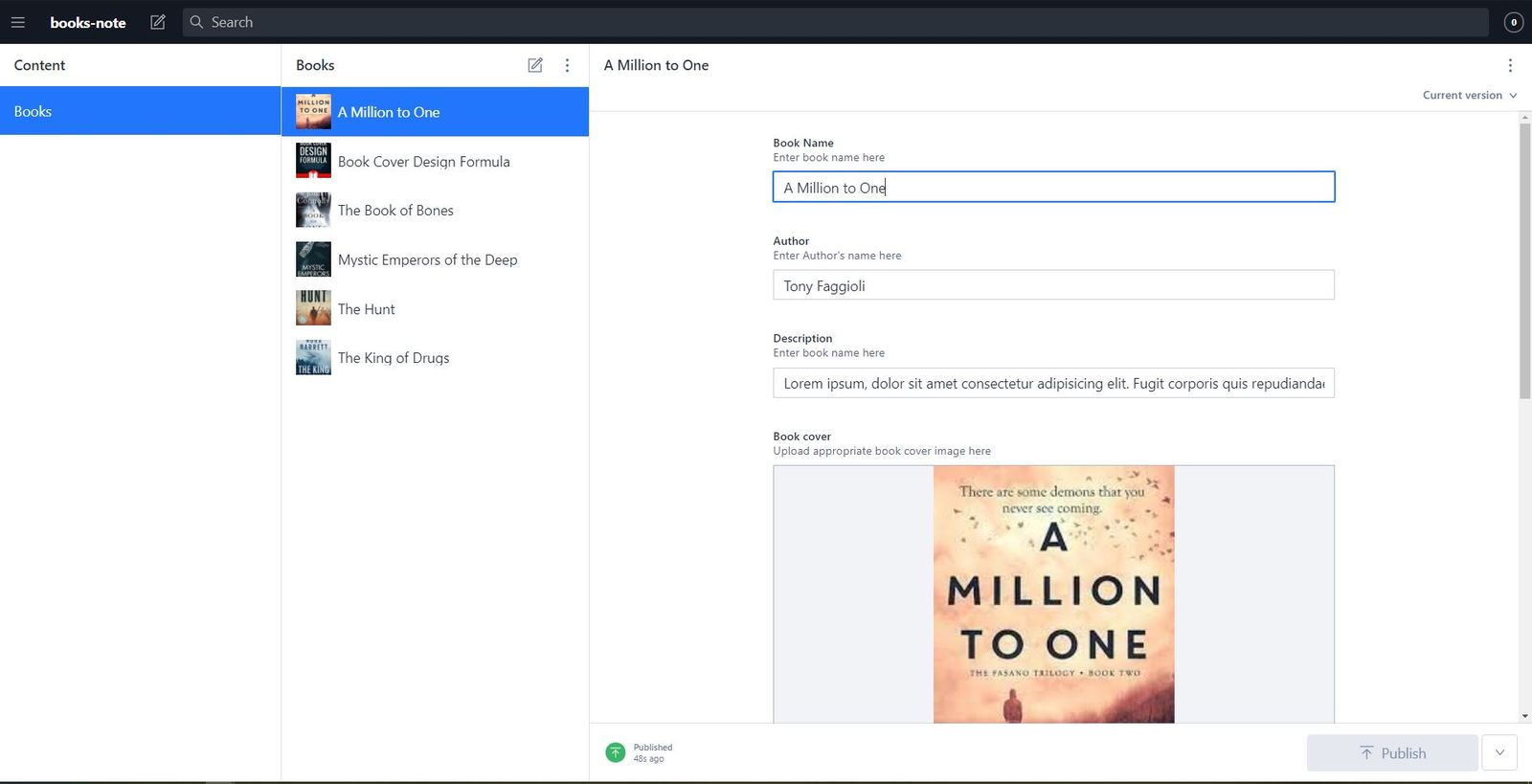 This should output something like this when you click on any book: