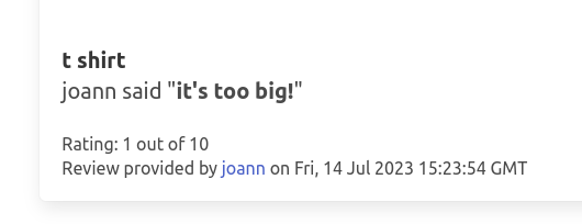 - A rating of the product with 1 as the lowest and 10 as the highest. This field is required.