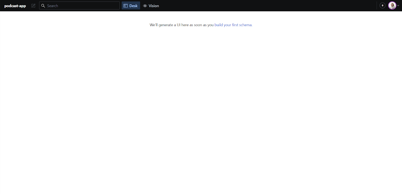 Since we chose a project without any predefined schema, our UI should be rather barren, like this: