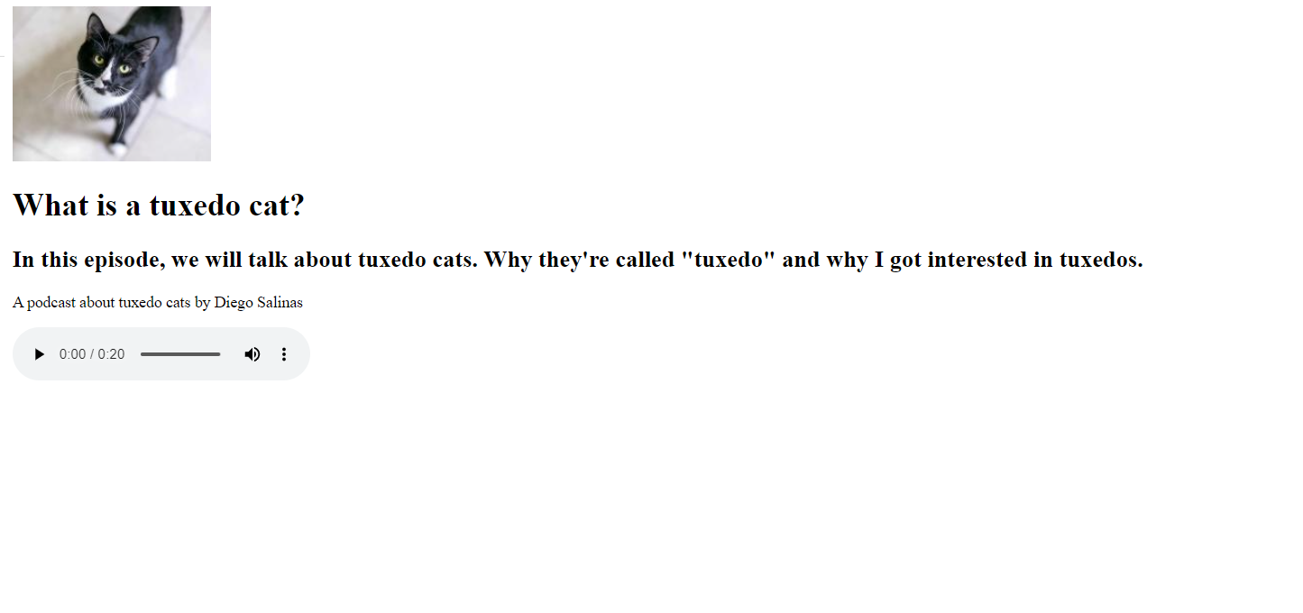 That’s it. You should have a deployed site now! Check mine here: https://tuxedo-cats-podcast-dsalinasgardon.vercel.app/