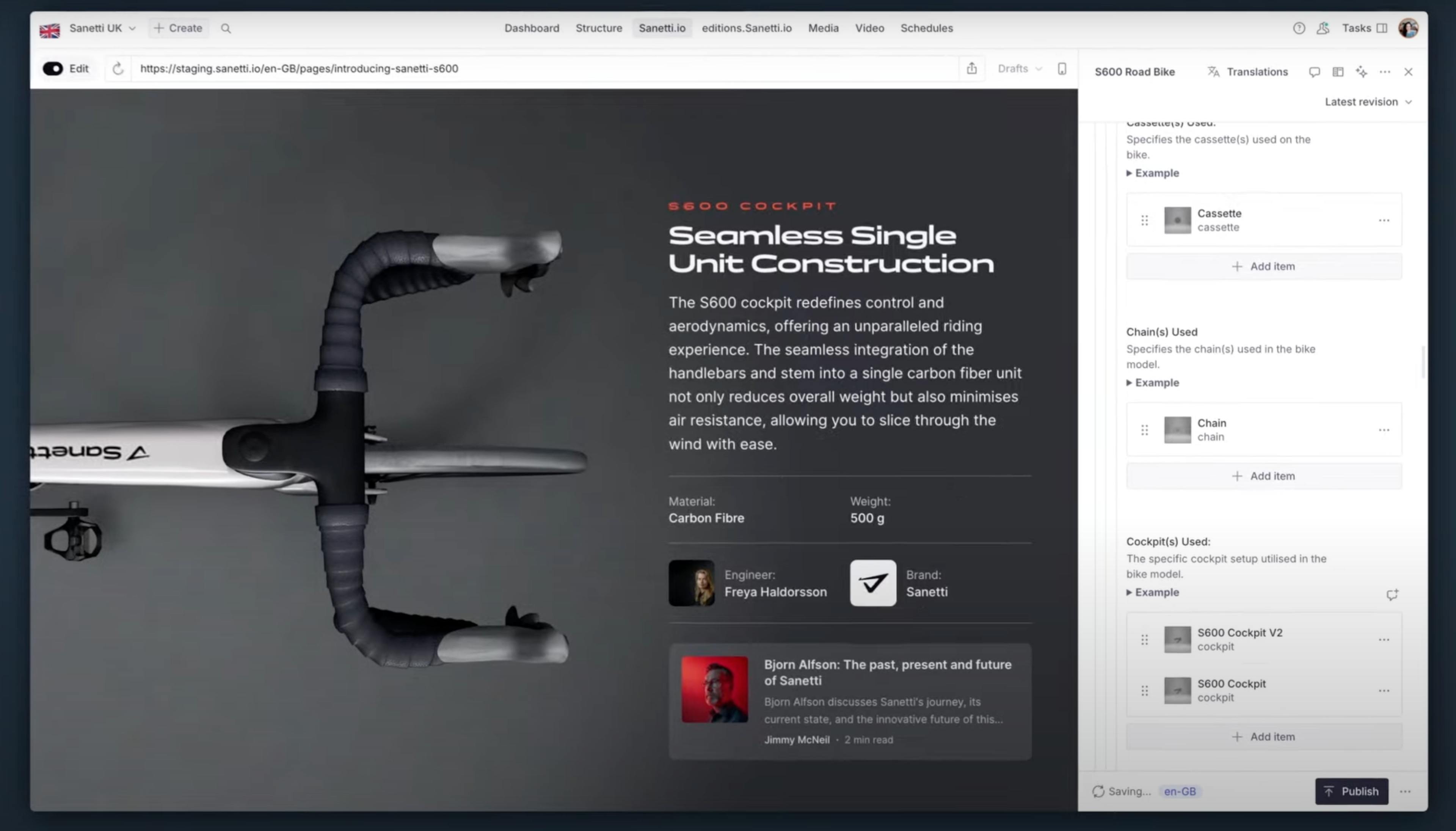 Your content teams can work in an intuitive content workspace that’s built for their use case. With built-in visual tools, it enables quick edits and image optimization. With real-time collaboration, tailored access, and workflows, they can work without bottlenecks.
