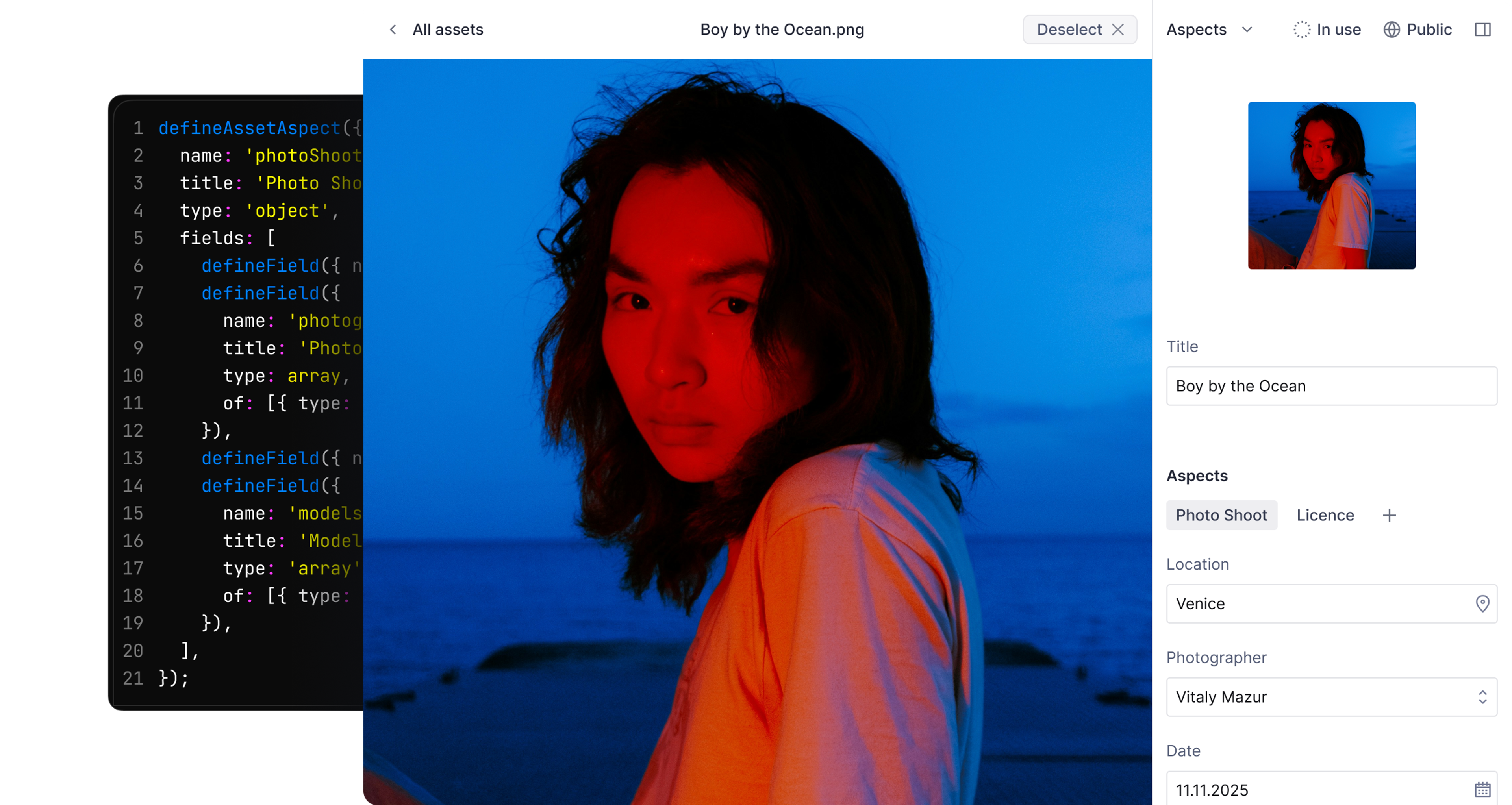 Alt text, captions, usage rights. Metadata lives with your assets. Update once, reflects everywhere the image appears.
