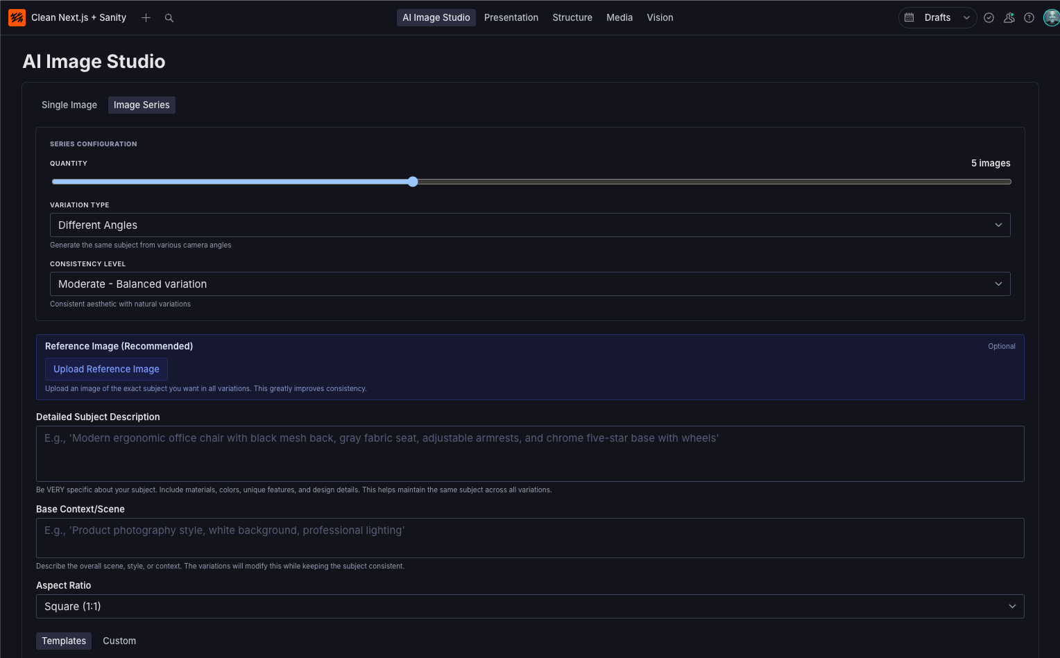 - Direct Sanity Upload: Generated images automatically uploaded to Sanity assets