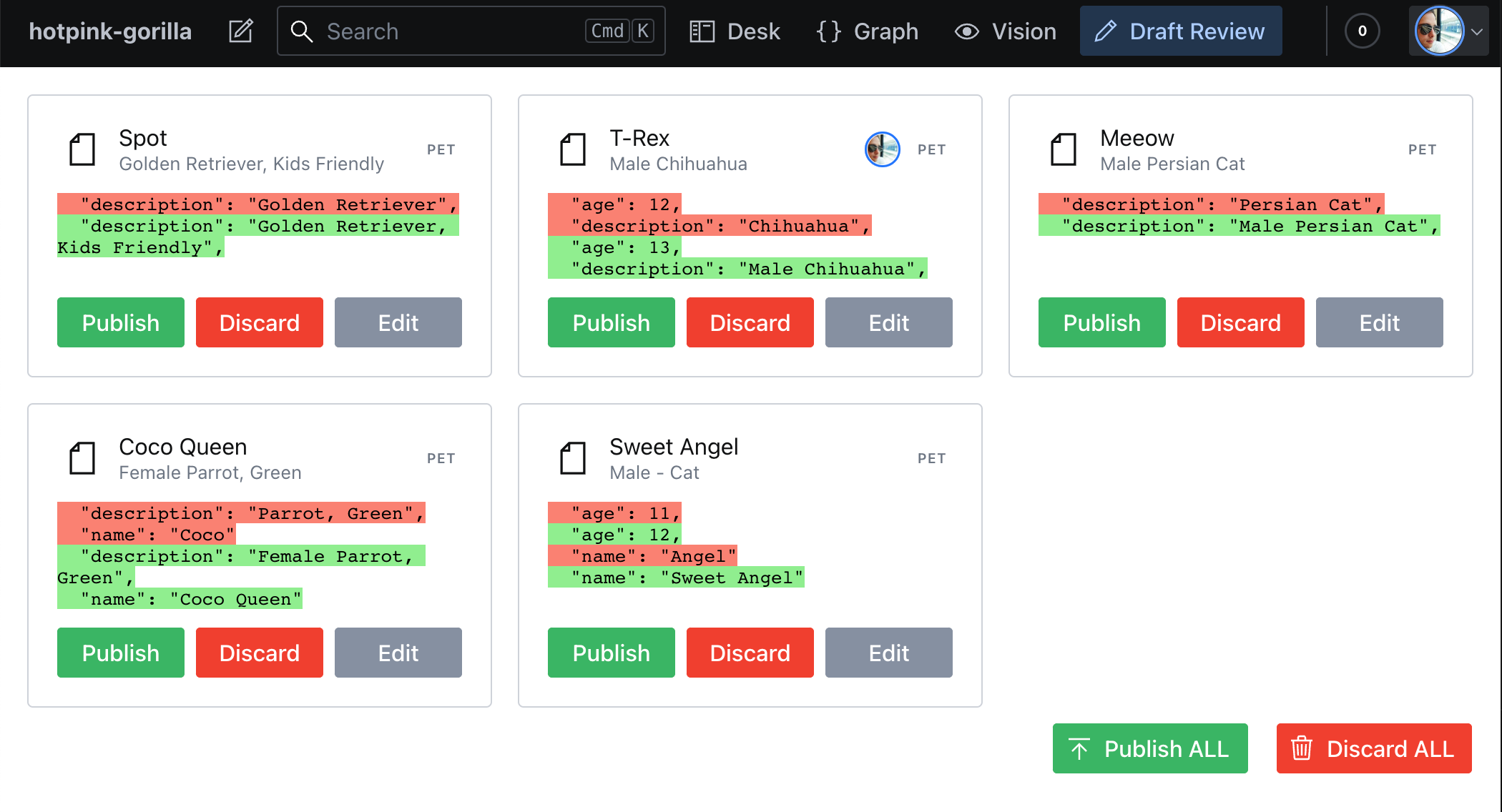 - Improve the diff visualization, now it's not rendering the full object structure because it just too much information on the page. It should display the full path of changed properties, example: "title.langs.en" instead of "en"