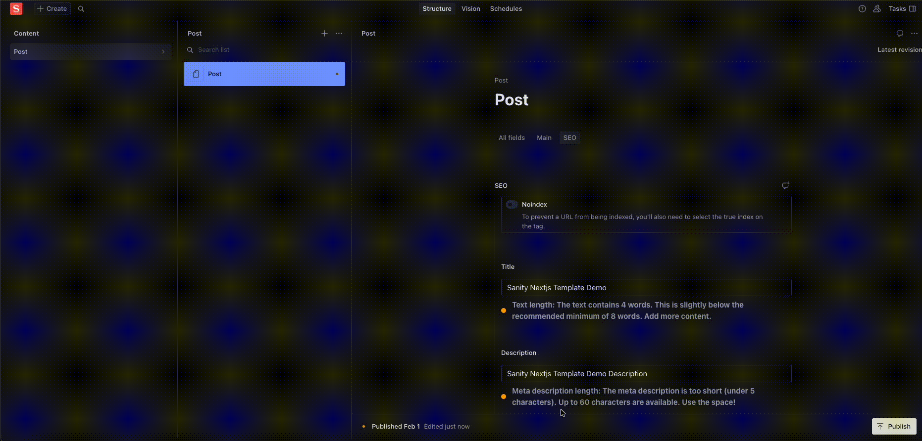 🔌 Sanity Studio Integration: Effortlessly incorporate SEO field creation into your Sanity Studio workflow, ensuring that SEO optimization becomes an integral part of your content development process.