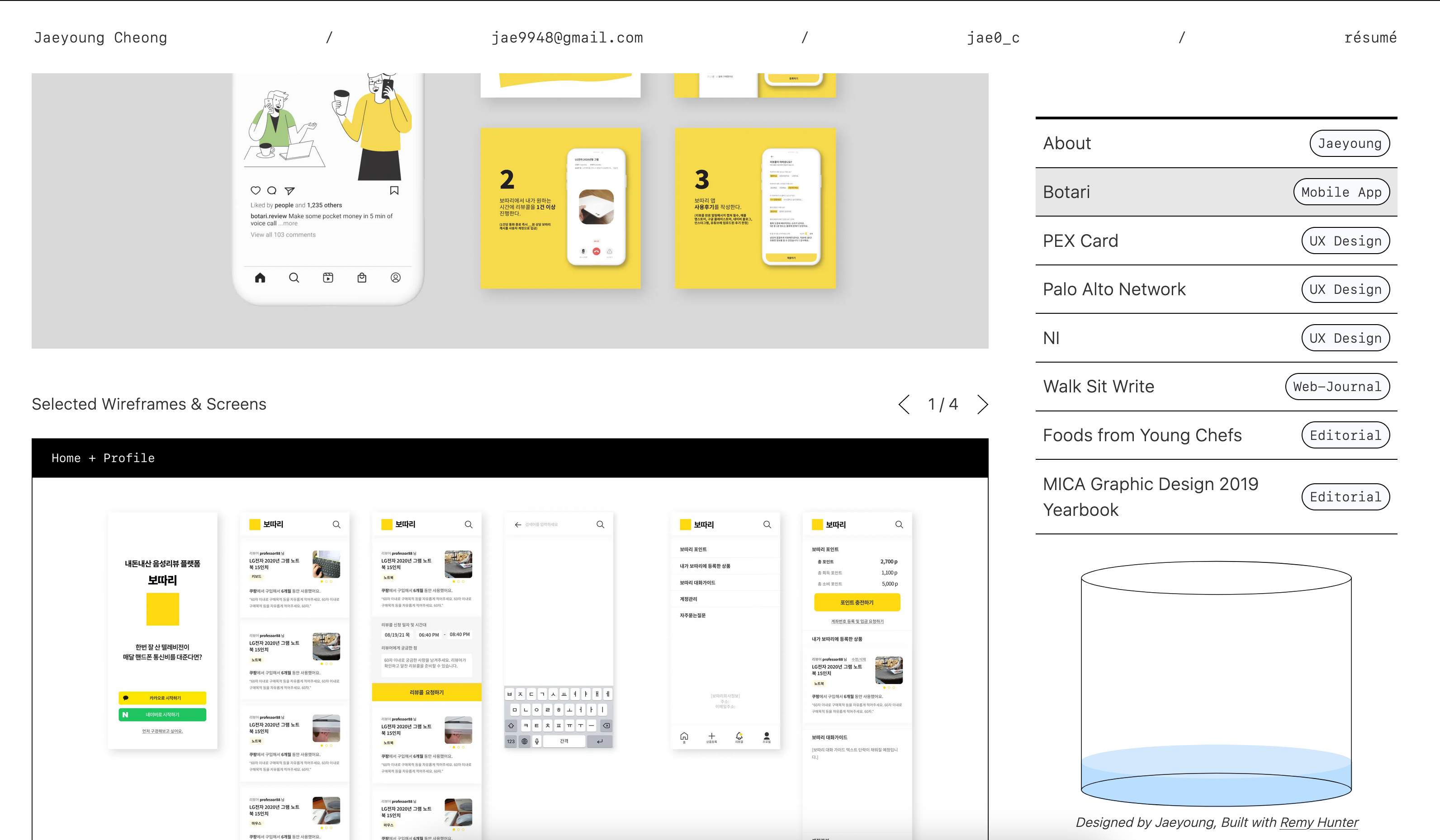 Unique site built for Jaeyoung Cheong's UX Design portfolio