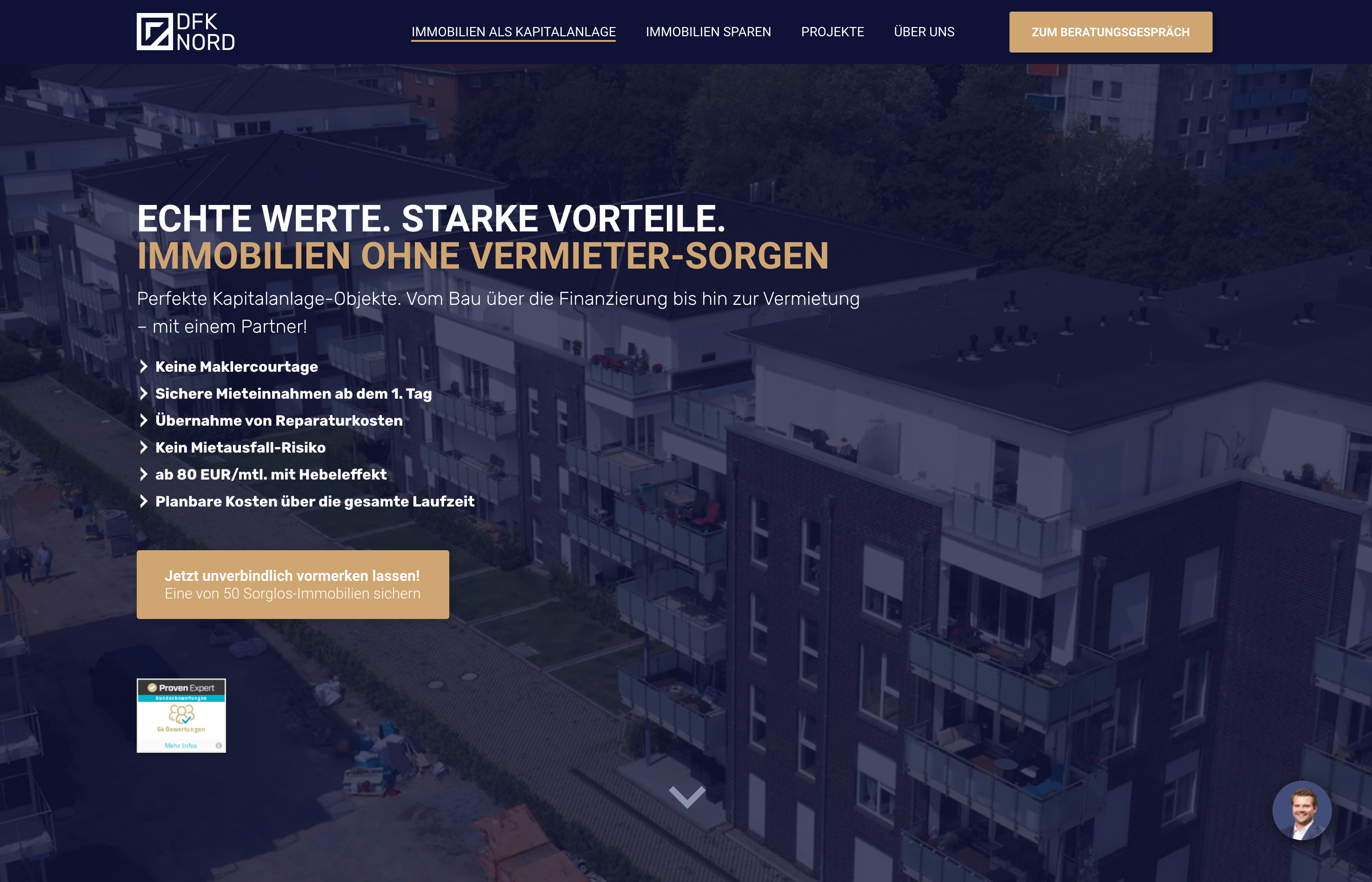 DFK Nord AG, responsible for over 60 large-scale real estate projects, needed a centralized way to manage and showcase properties, while personalizing content for more than 100 employees across various branch offices. Their existing website lacked the flexibility to deliver dynamic content in real time and did not effectively support lead generation.