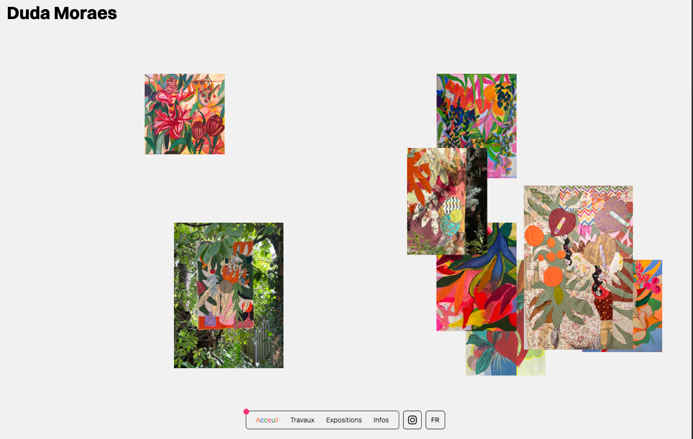 One challenge was designing a dynamic news feed to highlight her many exhibitions in France and Brazil, allowing users to easily explore past, current, and upcoming events. For the design, we added randomized colors and a grid layout on the homepage, reflecting the unique, unpredictable nature of Duda’s artistic process. Just like her work on canvas or other mediums, the result feels organised but a little unexpected.