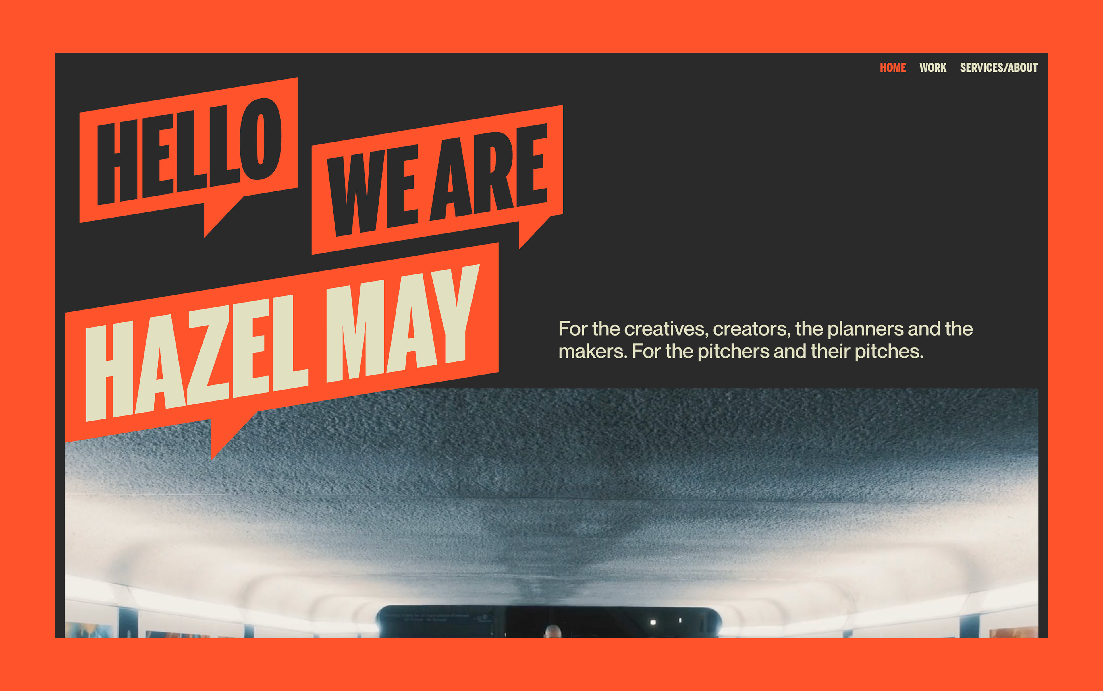A dynamic digital platform for Hazel May, combining bold identity, creative expertise, and comprehensive services to supercharge visual content for global brands.