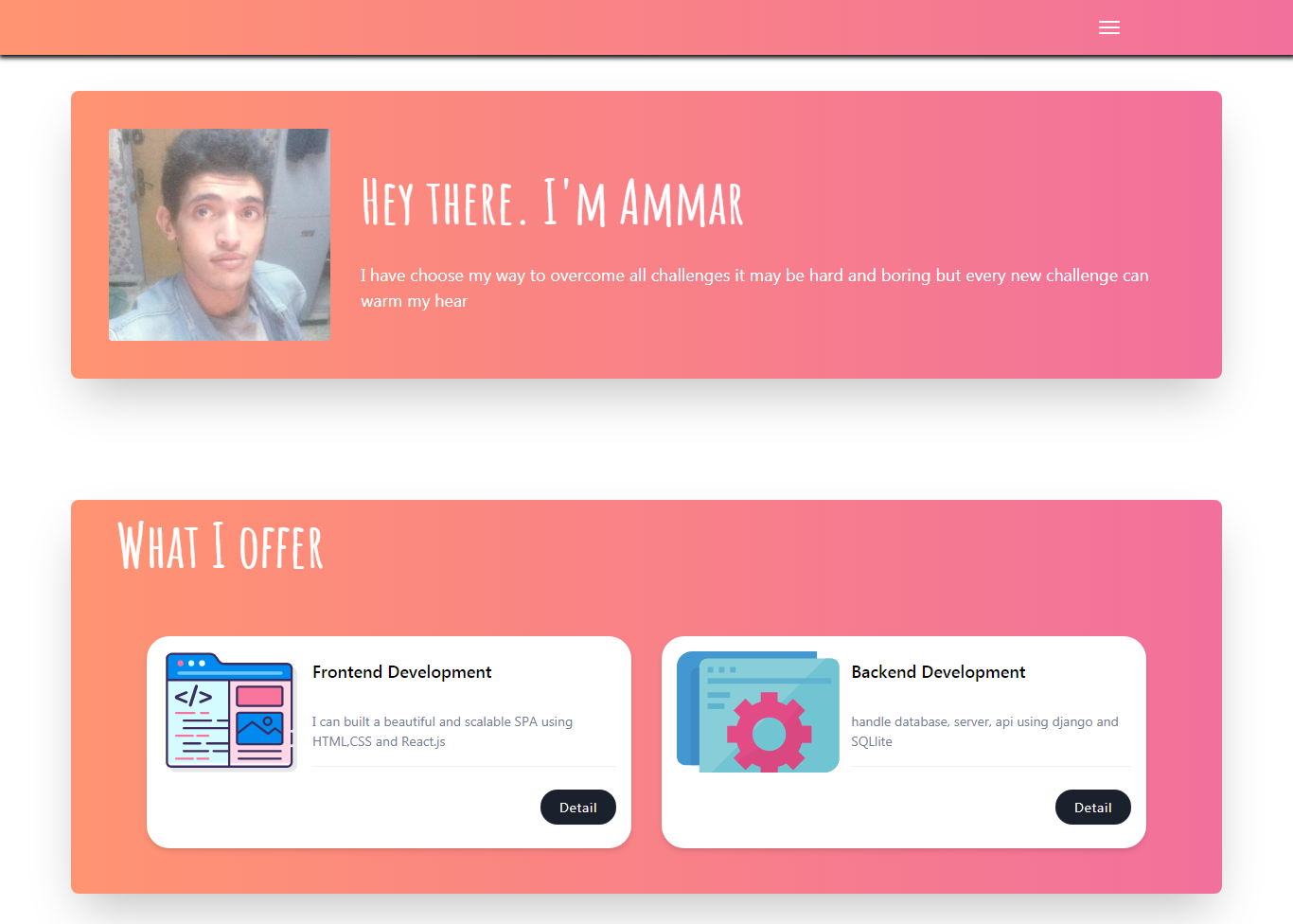 I really learned so much instead of trying copying the code and stopping here I've asked myself how can I improve this amazing work I said maybe if I tried to get the attention of the viewer by making them about component with some extra information as the first page and changing the other component to describe more the person in the cv