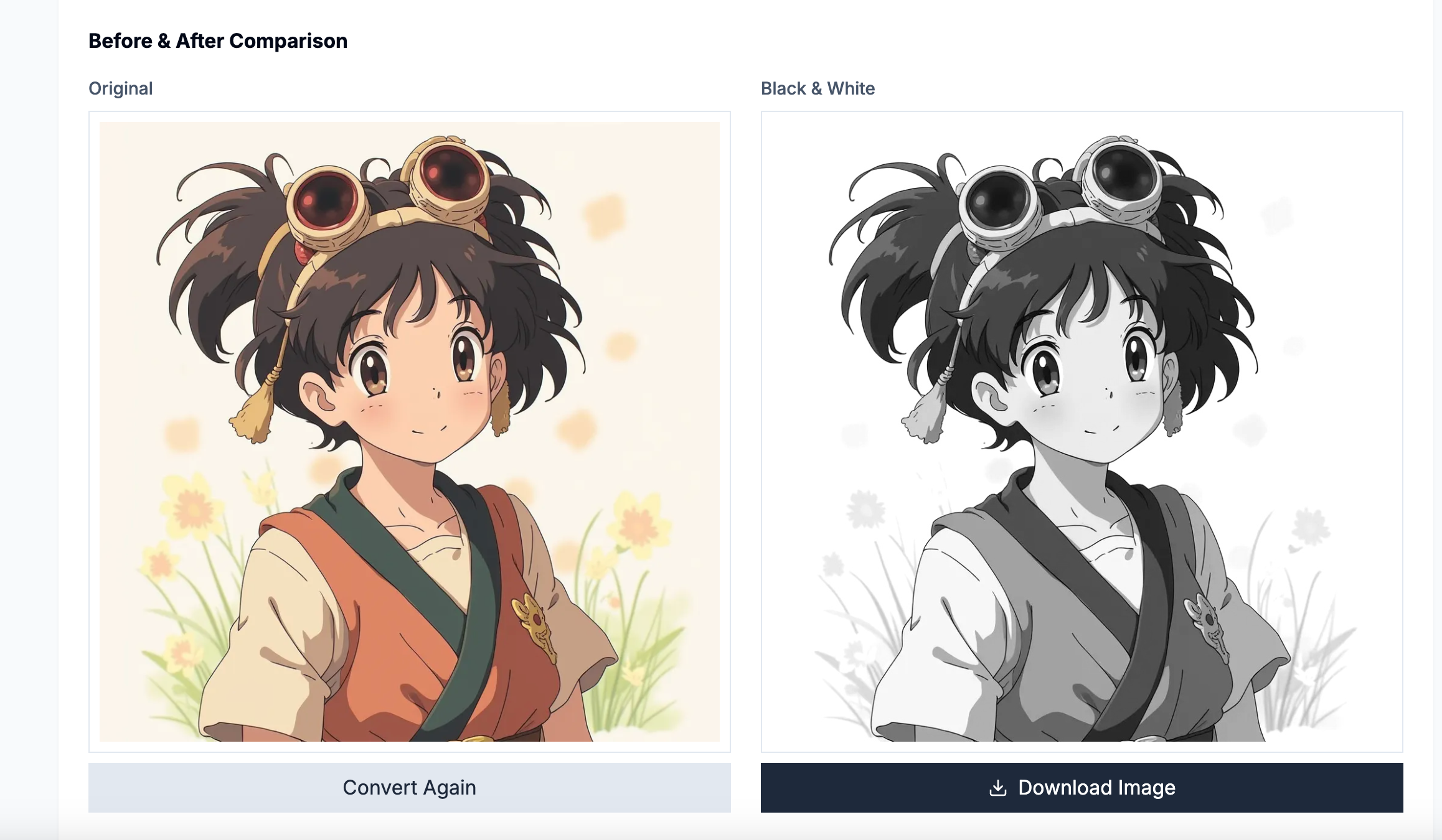 ImageToBlackAndWhite offers a seamless solution for anyone looking to create professional black and white images without technical expertise or expensive software. Our web-based converter instantly transforms color photos into timeless monochrome masterpieces while preserving detail and texture.Unlike traditional photo editing software that requires a steep learning curve, our tool simplifies the entire process down to just a few clicks. Whether you're a photographer seeking to enhance composition, a business professional creating marketing materials, or a student working on a creative project, our converter delivers professional-quality results every time.With features like adjustable contrast, brightness control, and grain effects, you can fine-tune your black and white conversions to achieve the perfect balance between light and dark areas. The instant preview function lets you see changes in real-time before downloading, ensuring you get exactly the look you want.Best of all, ImageToBlackAndWhite is completely free with no hidden costs, processes images directly in your browser for maximum privacy, and supports all major image formats including JPG, PNG, and WebP.