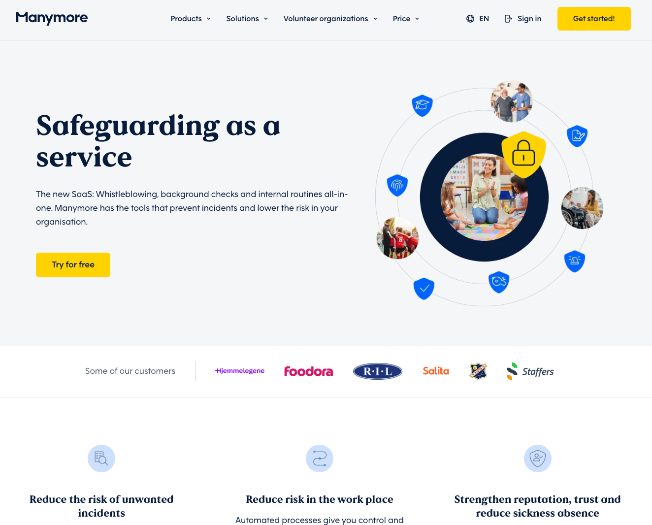New marketing website for Manymore.com - a safguarding platform that enables businesses to screen new hires, train staff on internal routines, contract management, and internal reporting and whistleblowing channel.