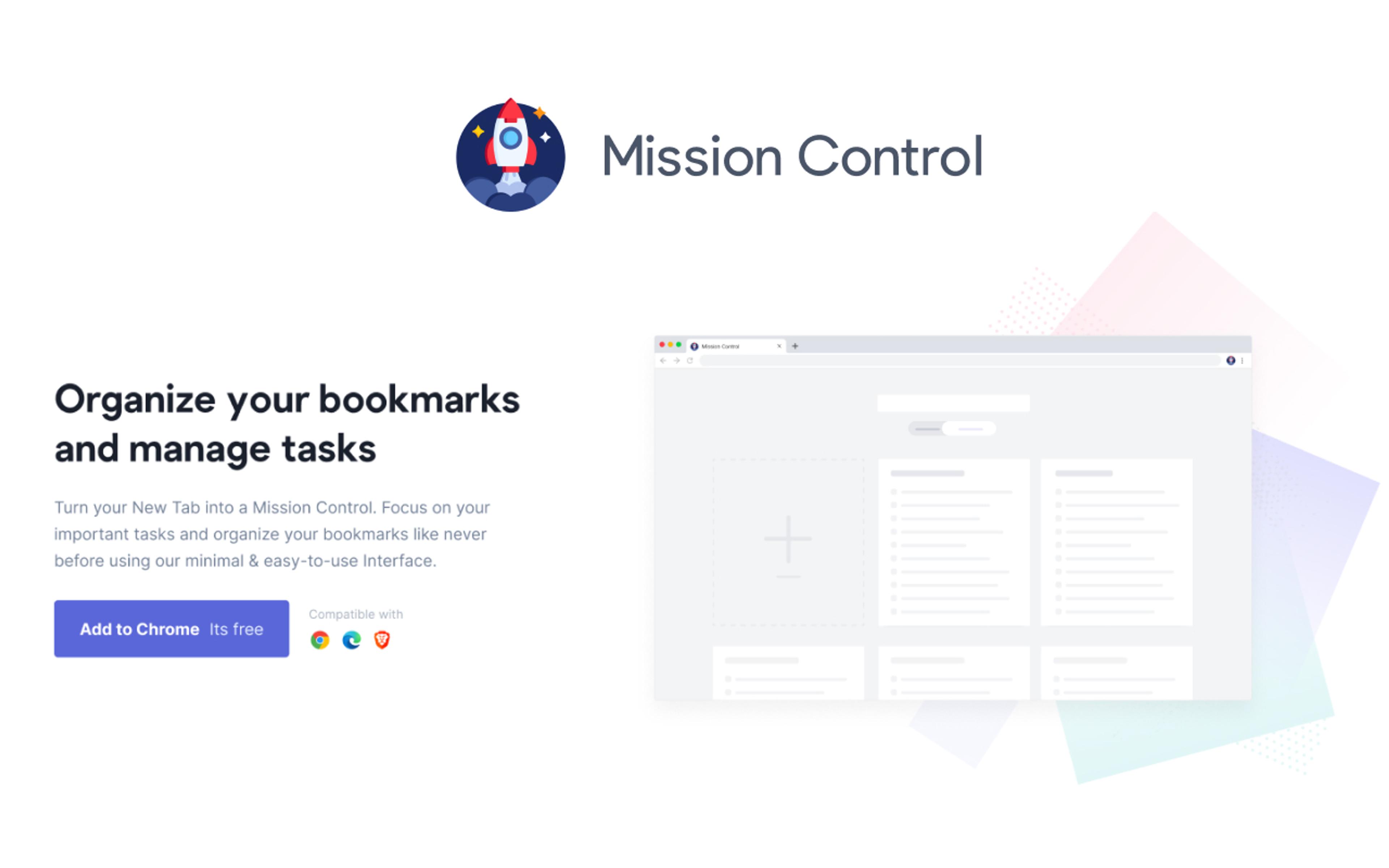 Mission control is a chrome extension to manage bookmarks and tasks. Focus on your important tasks and organize your bookmarks like never before using our minimal & easy-to-use Interface.