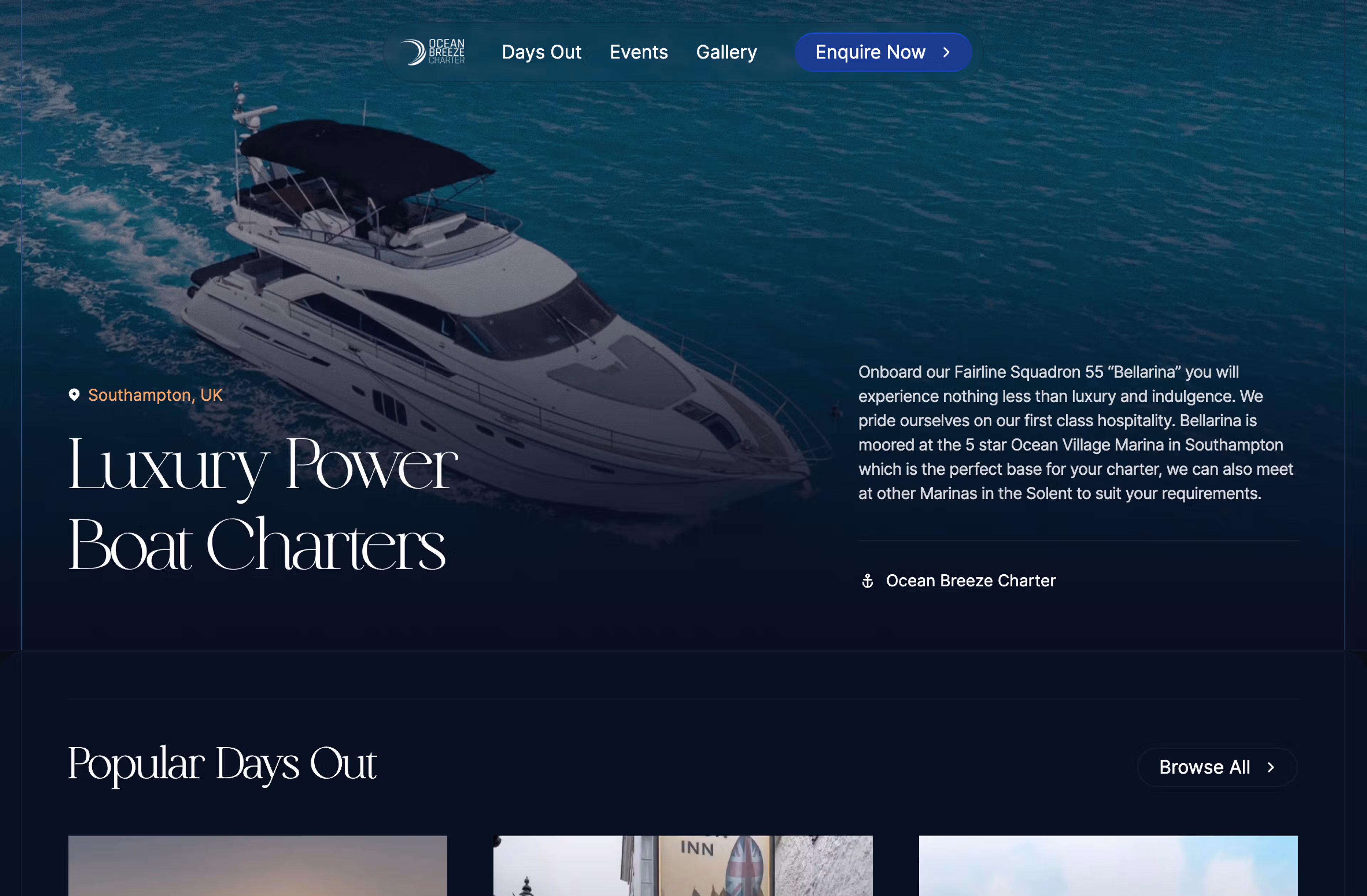 Bespoke website for a luxury yacht charter company.