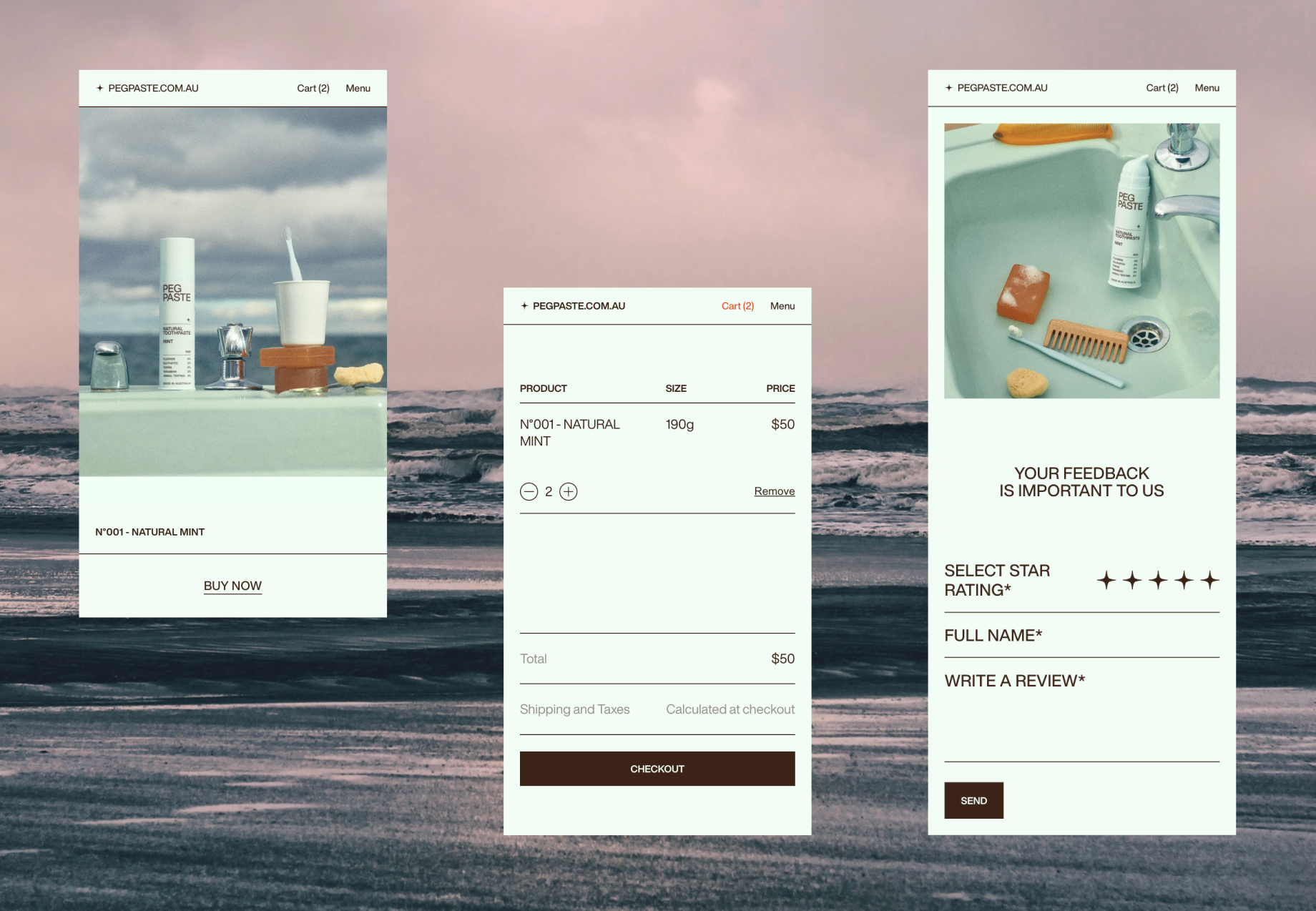 I worked alongside designer Byron Robertson from Bien Studio in order to create a e-commerce solution for PEG PASTE. We were also very lucky to collaborate with 3D2D for the 3D renders, Lauren Bamford for the photography, and Poppy Buntz for the styles.