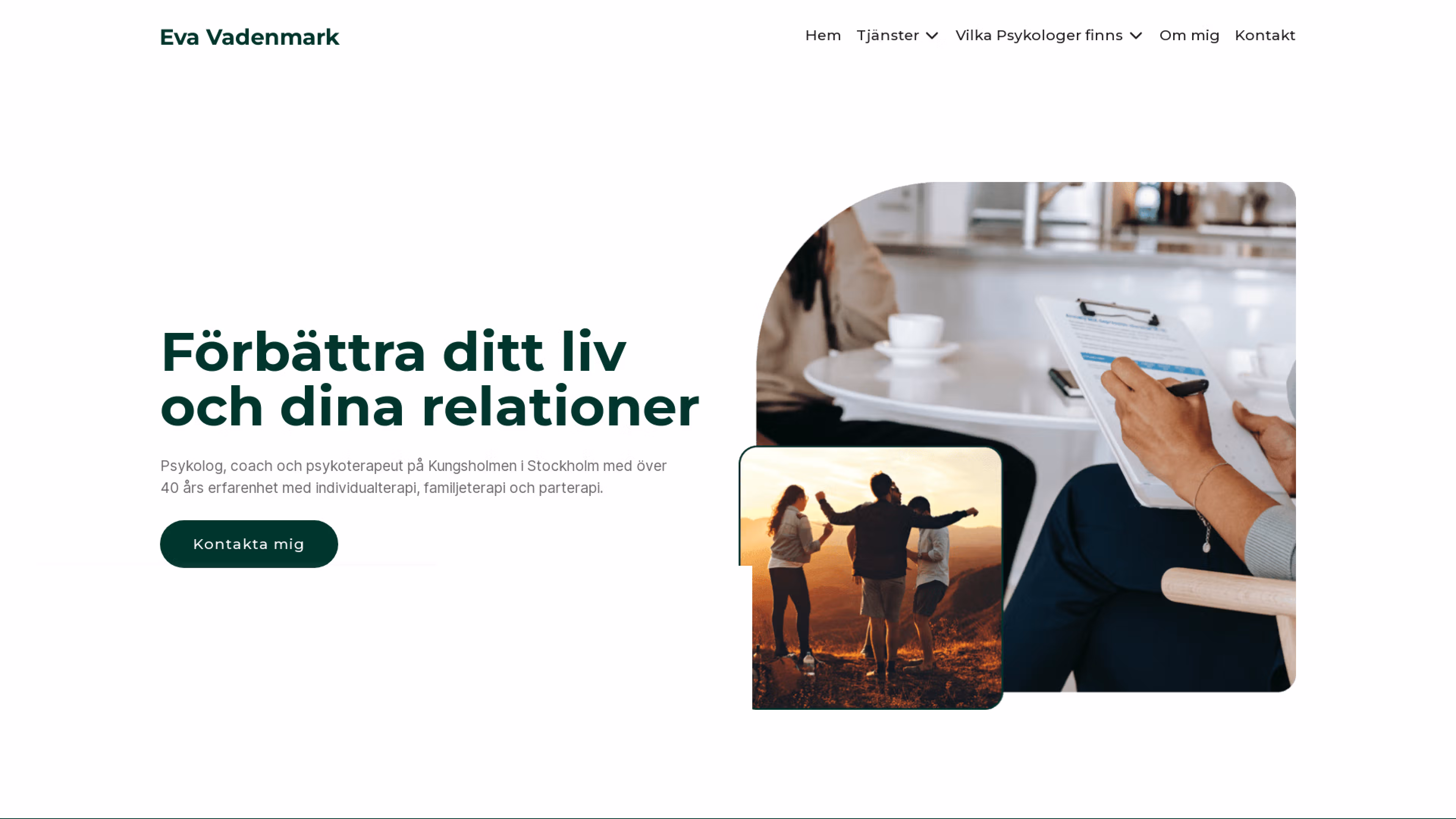 Building a Marketing Website to Present the Services of Eva Vadenmark, a Psychologist, Coach, and Psychotherapist.