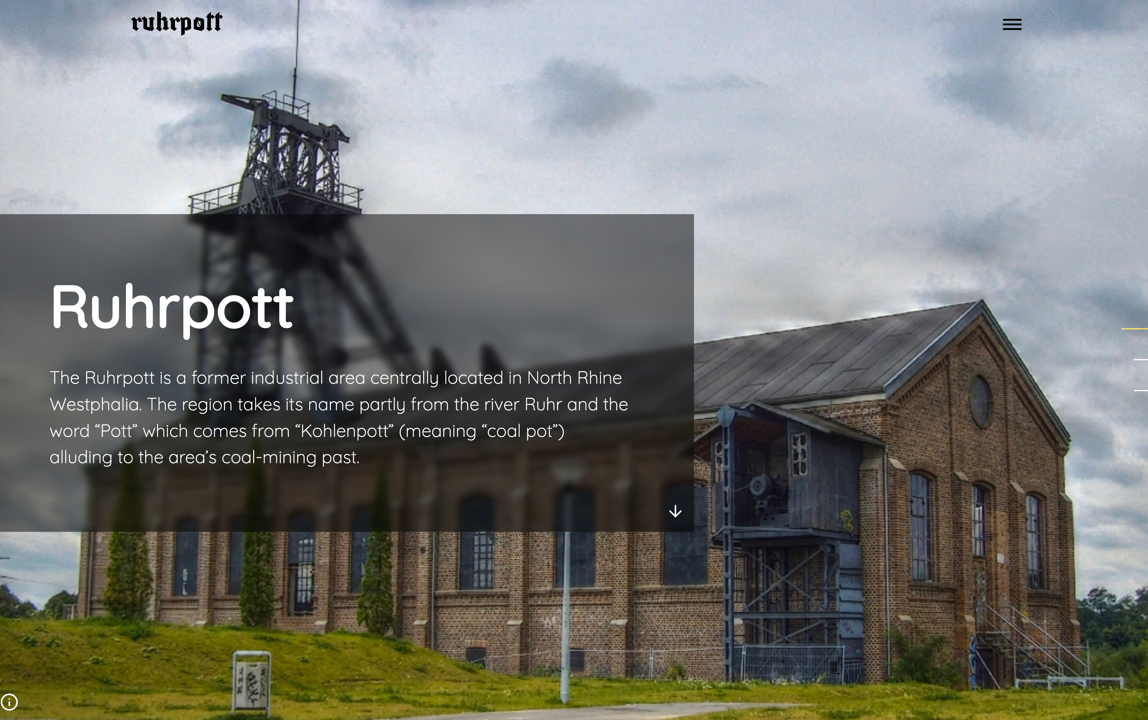 Ruhrpott is a proof-of-concept website built to demonstrate the use of structured content in a static website created with the Metalsmith Static Site Generator. The Sanity content management system is a perfect match to achieve this objective.