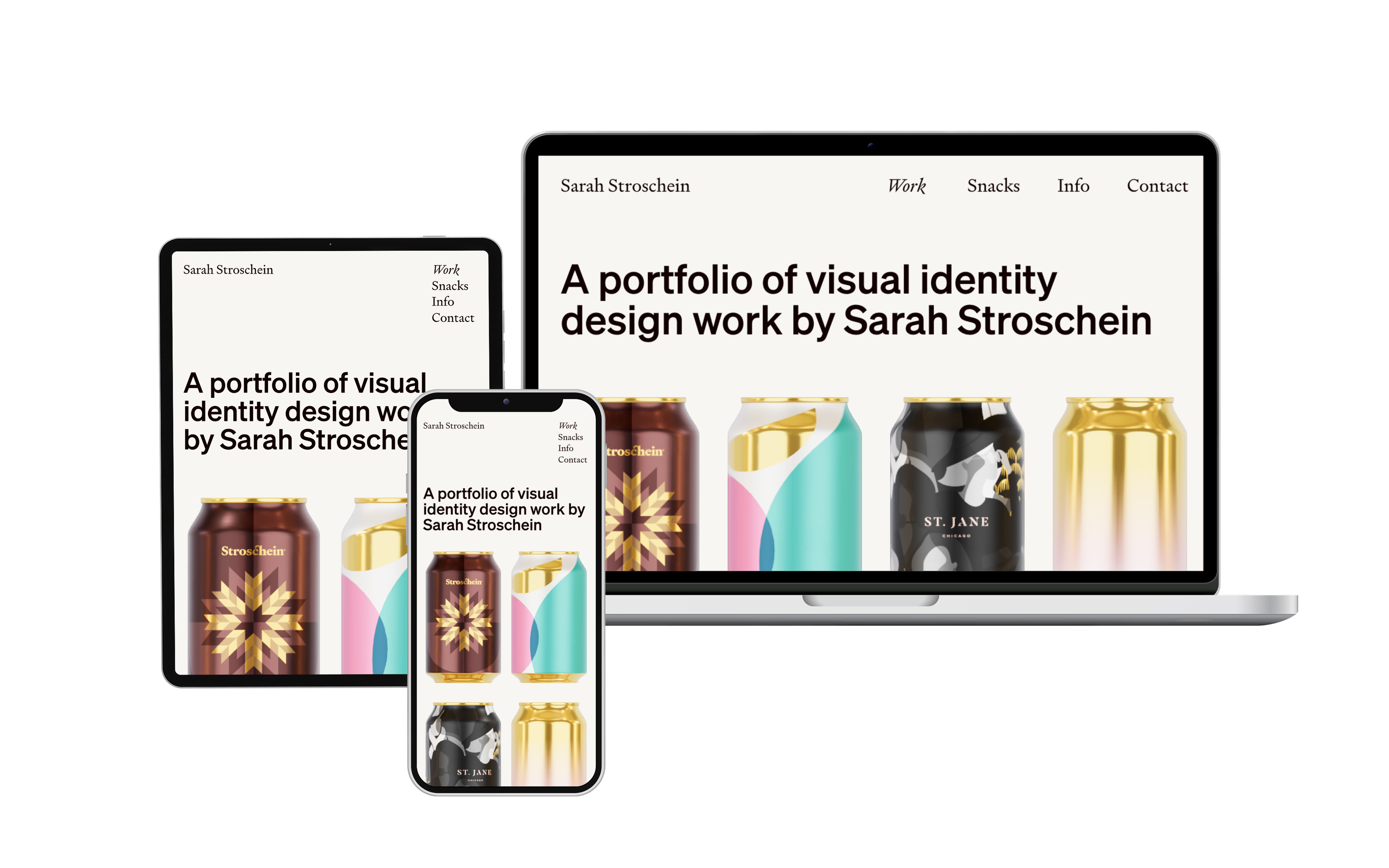 Portfolio site for visual identity designer Sarah Stroschein, with a fun brewery theme that has ties to her name.