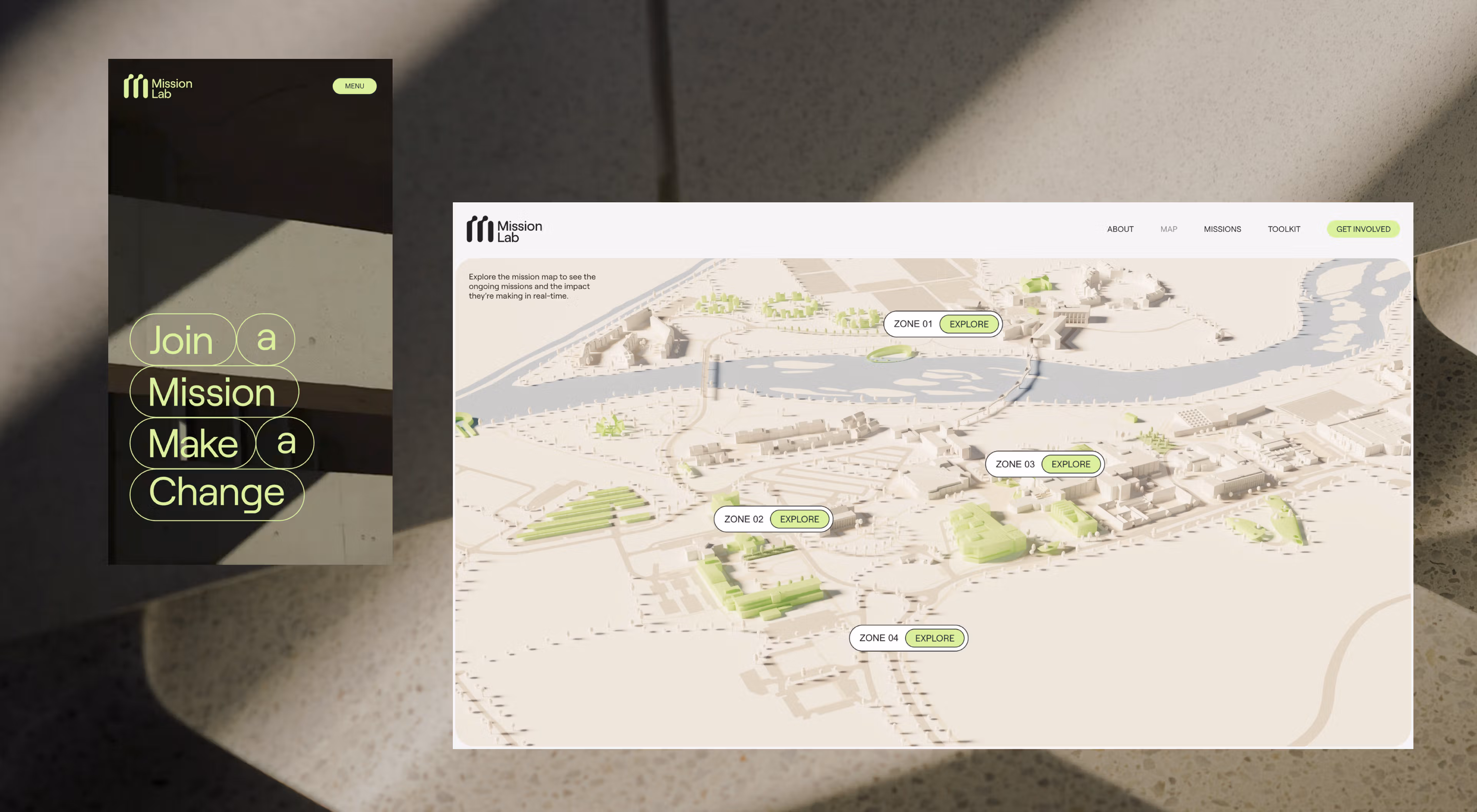 The Mission Lab site was created in collaboration between the University of Limerick and Studio Saol, with the help of Bien Studio and Allan Pooley (Dev)